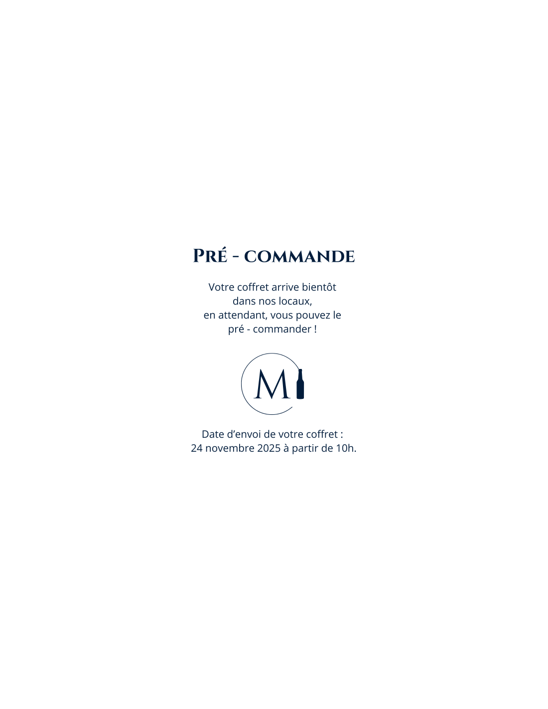 Conditionnement : Les coffrets sont proposés dans un emballage exclusif, spécialement conçu pour accueillir 2 à 3 mignonnettes. Afin de garantir une sécurité optimale pendant le transport, vous recevrez le coffret et le carton séparément : les mignonnettes sont soigneusement protégées, et l’écrin, pour éviter toute détérioration, est simplement glissé dans le colis.Il vous suffira ensuite d’y placer la ou les mignonnettes à réception. Vous pourrez également ajouter un mot personnalisé si le coffret est destiné à être offert.
