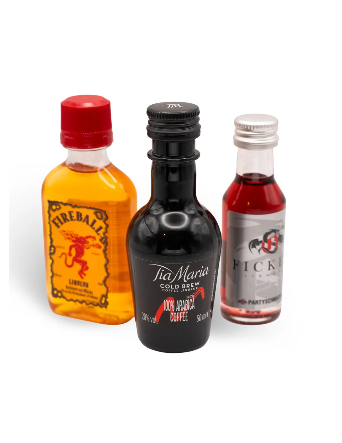 Mignonnettes d’alcool | Tia Maria - Ficken Jostabeerenlikör - Fireball Coffret « Trio Intensité Gourmande » – 2 × 5 cl + 2 cl